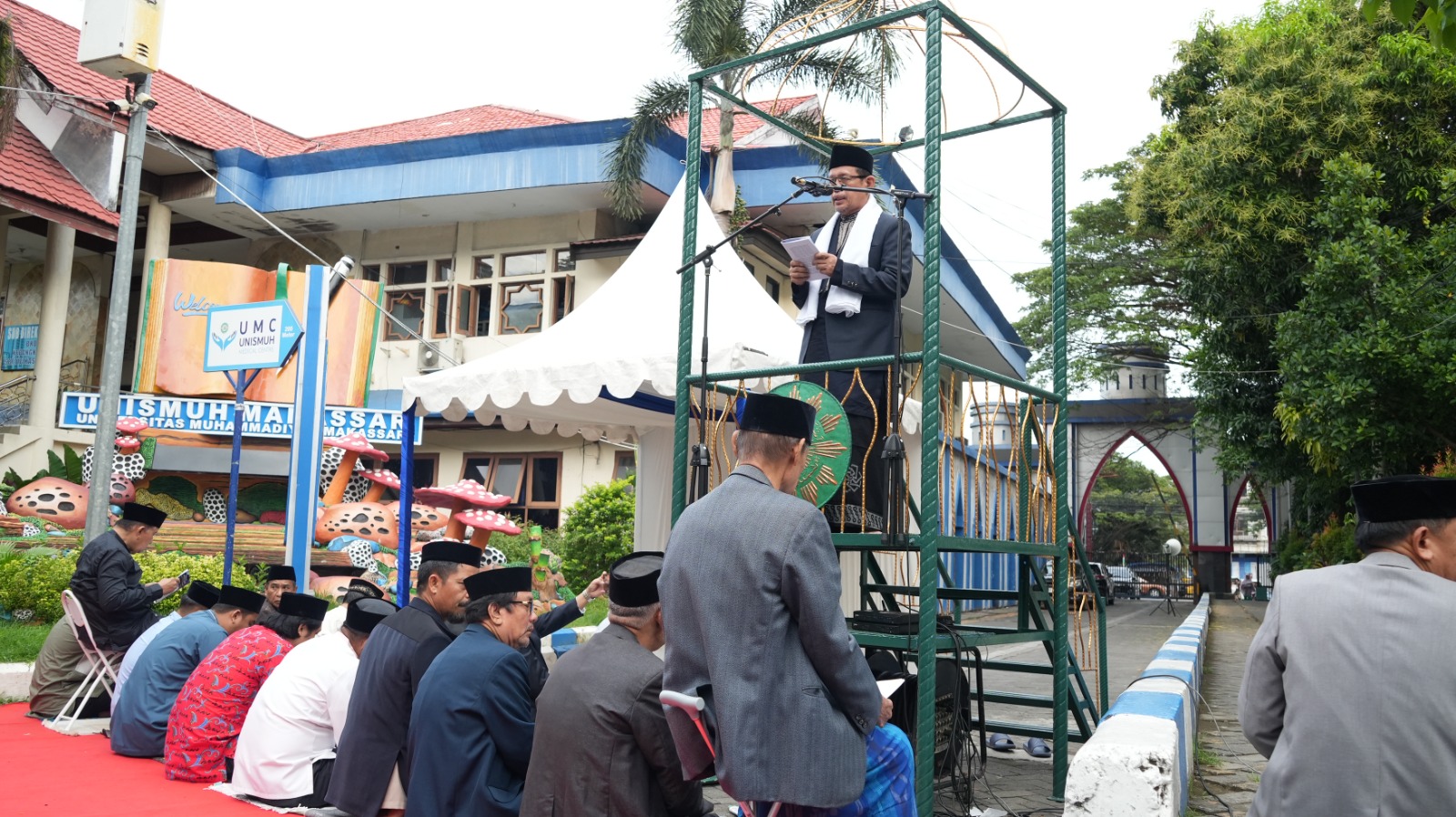 Bertindak sebagai imam adalah Direktur PUTM Unismuh, Dr KH Abbas Baco Miro. Sementara itu, khutbah Idul Adha disampaikan oleh Rektor Unismuh Makassar, Dr H Abdul Rakhim Nanda.