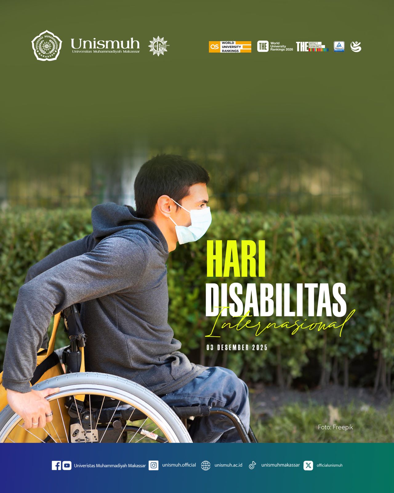 Porosmaju.com, Makassar — Universitas Muhammadiyah (Unismuh) Makassar berkomitmen menyiapkan penguatan layanan pendidikan inklusif melalui audit aksesibilitas fasilitas kampus, pembenahan layanan digital, serta penguatan budaya kampus yang lebih ramah disabilitas. Dorongan agar agenda itu dijalankan secara terukur disampaikan Pakar Sosiologi Anak Berkebutuhan Khusus Unismuh, Dr Fatimah Azis, M.Pd, dalam rangka peringatan Hari Disabilitas Internasional 2025.