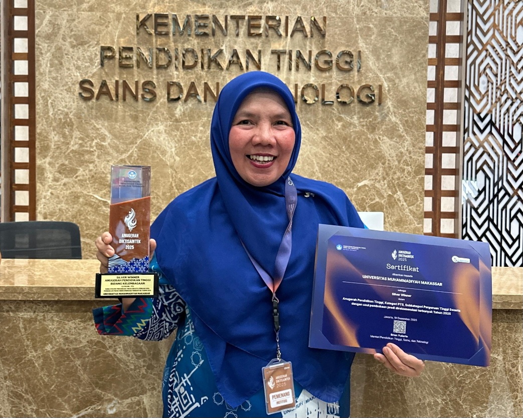 Penghargaan tersebut diserahkan langsung oleh Sekretaris Jenderal Kemdiktisaintek, Togar Mangihut Simatupang, kepada Wakil Rektor II Unismuh Makassar, Dr Ihyani Malik, dalam acara Anugerah Diktisaintek 2025 yang digelar di Graha Diktisaintek, Jakarta, Jumat, 19 Desember 2025.