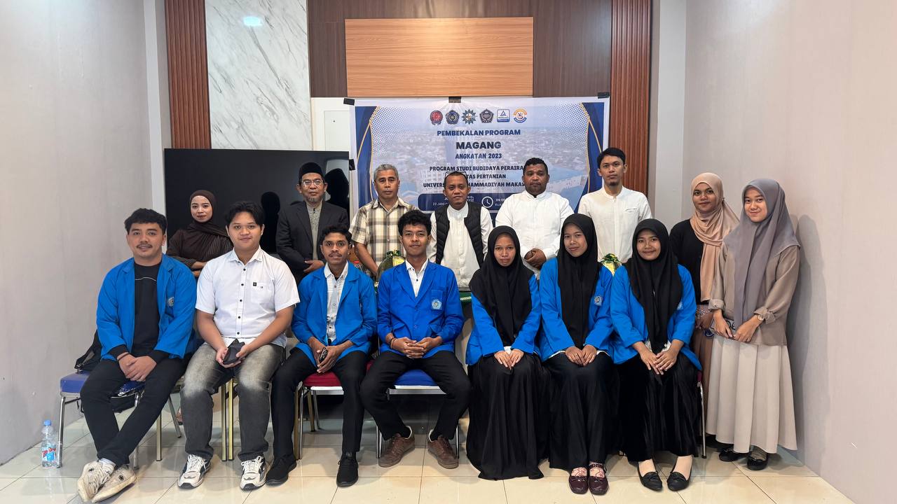 Porosmaju.com, Makassar — Program Studi Budidaya Perairan, Fakultas Pertanian Universitas Muhammadiyah (Unismuh) Makassar, menggelar kegiatan Pembekalan Magang Mahasiswa di Lantai 6 Gedung Iqra Fakultas Pertanian Unismuh Makassar. Sabtu, 24 Januari 2026. Kegiatan ini menjadi bagian dari upaya institusional dalam menyiapkan mahasiswa menghadapi dunia kerja melalui pengalaman praktik lapangan.