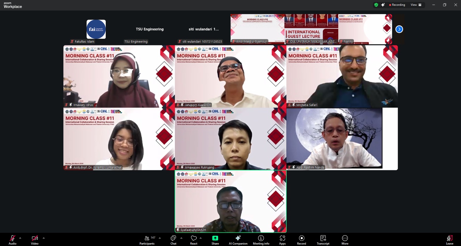 Porosmaju.com, Makassar – Universitas Muhammadiyah Makassar (Unismuh Makassar) melalui Fakultas Teknik menggelar kuliah tamu internasional bertajuk International Guest Lecture dalam rangka program International Collaboration and Sharing Session Morning Class #11. Kegiatan yang berlangsung secara daring melalui Zoom Meeting pada Senin, 9 Februari 2026, itu diikuti ratusan dosen dan mahasiswa dari kedua perguruan tinggi.