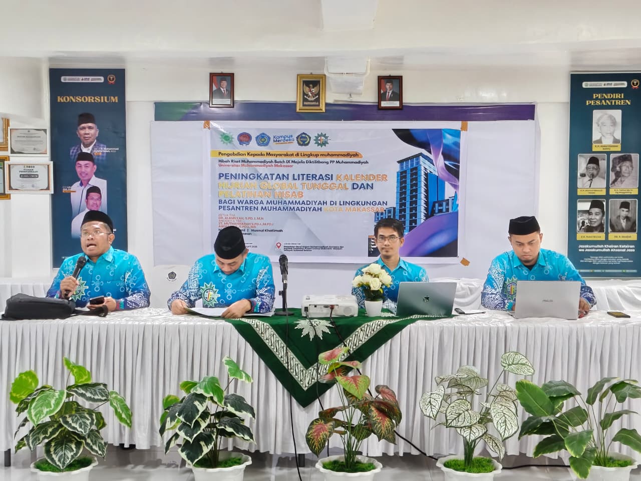 Kegiatan yang merupakan bagian dari Hibah Riset Muhammadiyah Batch IX dukungan Diktilitbang PP Muhammadiyah ini mengusung tema “Peningkatan Literasi Kalender Hijriah Global Tunggal dan Pelatihan Hisab bagi Warga Muhammadiyah di Lingkungan Pesantren Muhammadiyah Kota Makassar”. Sekitar 70 peserta hadir, terdiri dari pimpinan pesantren, guru, dan santri.