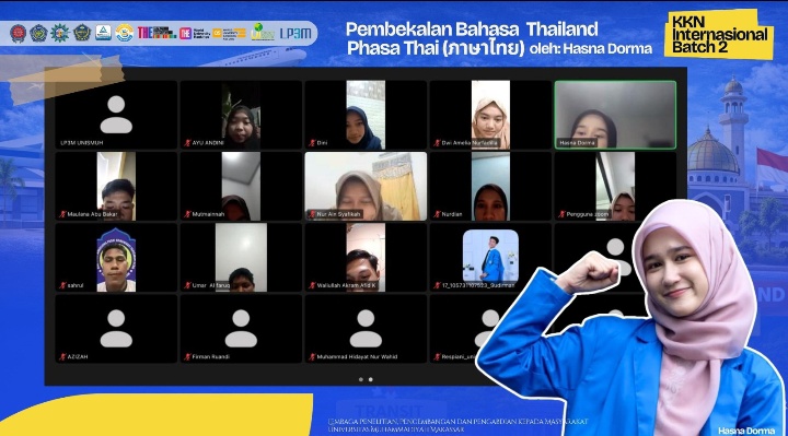Kegiatan yang dilaksanakan secara daring ini diikuti seluruh peserta sebagai bagian dari persiapan awal sebelum keberangkatan ke lokasi pengabdian di Narathiwat, Thailand Selatan. Dalam sesi pelatihan, Hasna tidak hanya mengajarkan bahasa, tetapi juga memperkenalkan aspek budaya, kebiasaan masyarakat, serta etika sosial yang perlu dipahami mahasiswa.